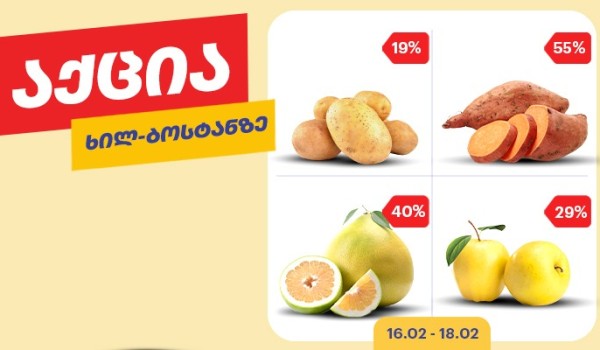 ყოველდღიურად განახლებადი ხილი და ბოსტნეული, 50%-მდე ფასდაკლება და რა თქმა უნდა ცხელ-ცხელი ყავა დილის ენერგიულად დასაწყებად.