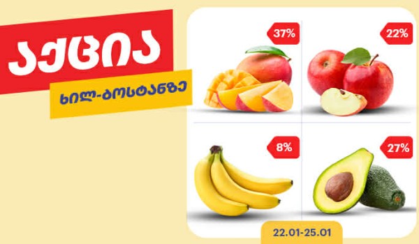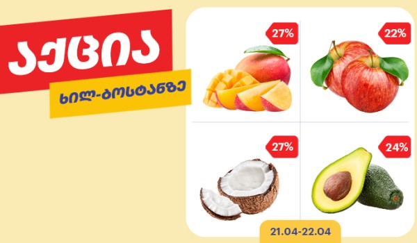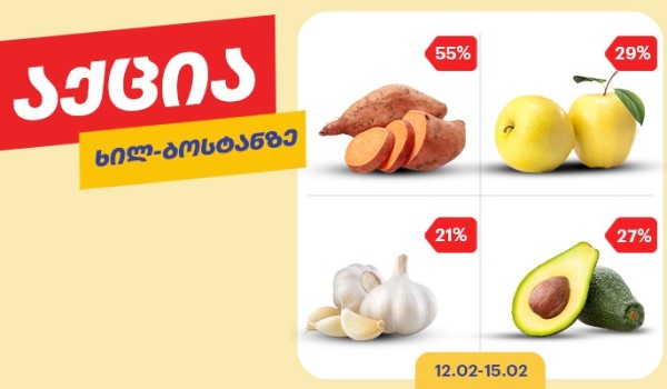 ყოველდღიურად განახლებადი ხილი და ბოსტნეული, 50%-მდე ფასდაკლება და რა თქმა უნდა ცხელ-ცხელი ყავა დილის ენერგიულად დასაწყებად.